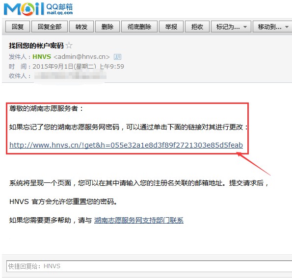 3、查看是否输入邮箱是否正确。正确格式为:admin@hnvs.cn/110@qq.com