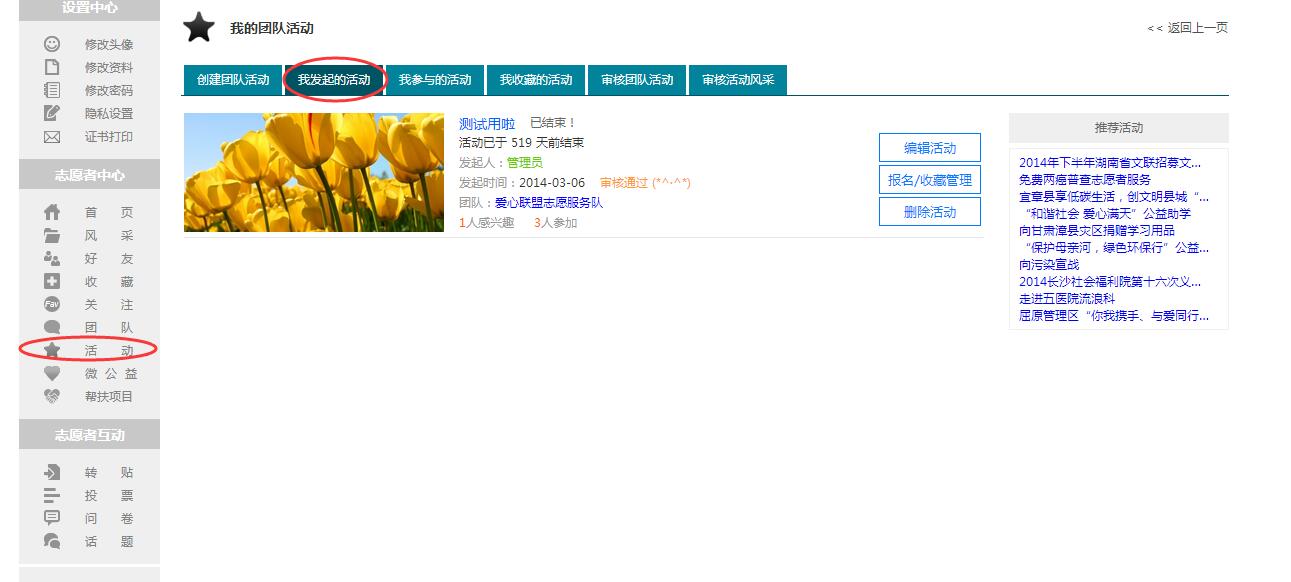 1).查看我发起的活动:( 网址:https://www.hnvs.cn/~mass!party);