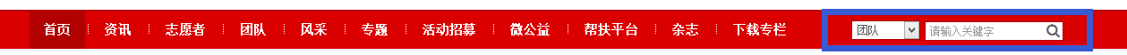 1、进入湖南志愿者官网点击菜单栏右侧搜索;