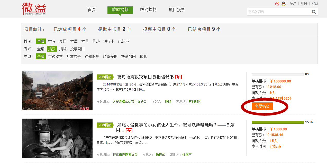 3、点击所要捐款的微公益项目,点击【我要捐款】,选择所要捐赠的金额,按照捐赠提示填写信息即可,如下图